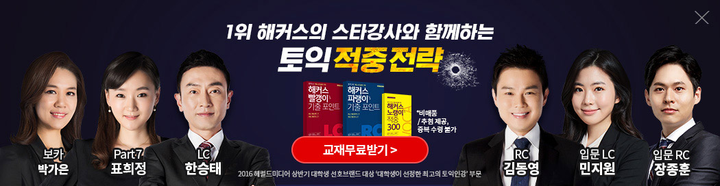 (해커스어학원 토익 정규 RC 강의평가 1위 (2015년 12월 ~ 2016년 12월 기준)
