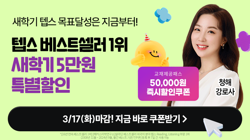 | 뉴텝스-실전 | [해커스 텝스] 텝스 적중예상특강 | |