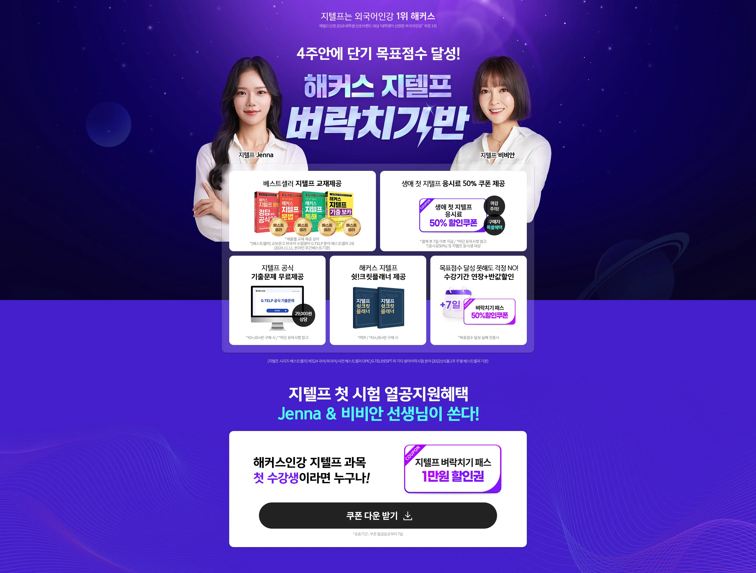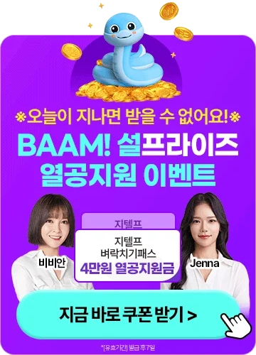4. 지텔프 과목 첫 수강생이라면 누구나 지텔프 벼락치기 패스 1만원 할인권 쿠폰을 제공합니다.