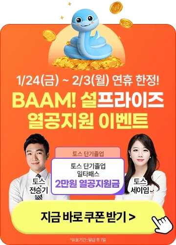 ㄴ[토스 단기졸업 일타패스]는 기간이 종료될 경우 재수강이 불가능합니다.