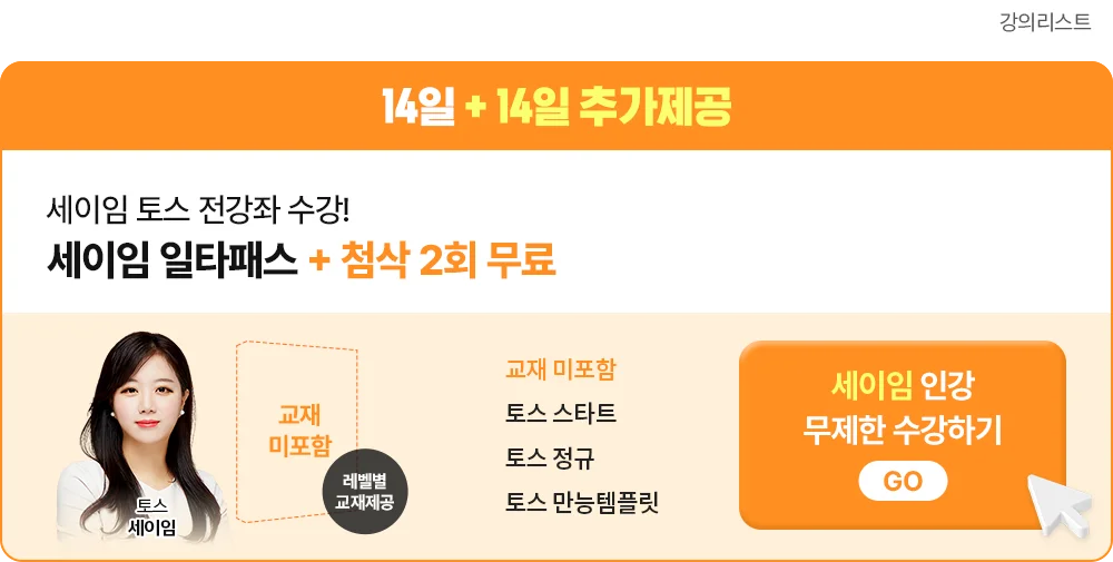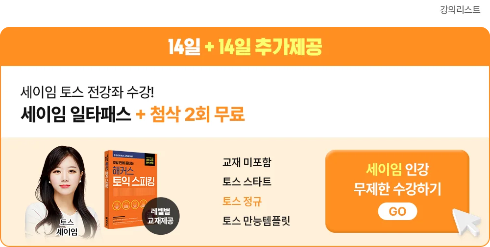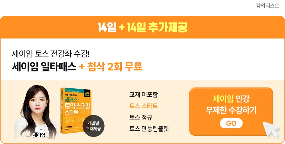 | 토스 | [세이임 토스] 10일 만에 끝내는 해커스 토익스피킹 |
