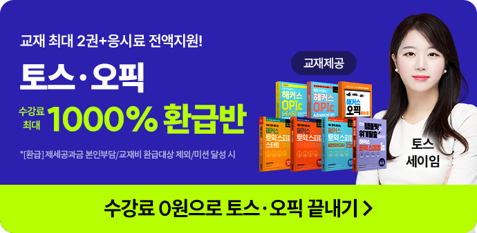 - 쿠폰 적용 가능 강의 : [토스오픽 1000% 환급반] https://champ.hackers.com/?c=event&evt_code=44342723