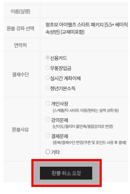 환불취소가 불가한 상태이실 경우, 고객센터로 문의주시면 도움드리겠습니다.