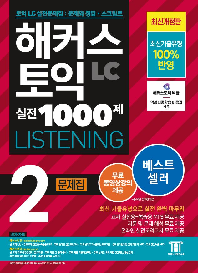[해커스 토익 실전 1000제 1 리스닝 문제집](2023 개정판) YES24 국어외국어사전 분야 토익/TOEIC 월별베스트 기준 (2010년~2023년)
